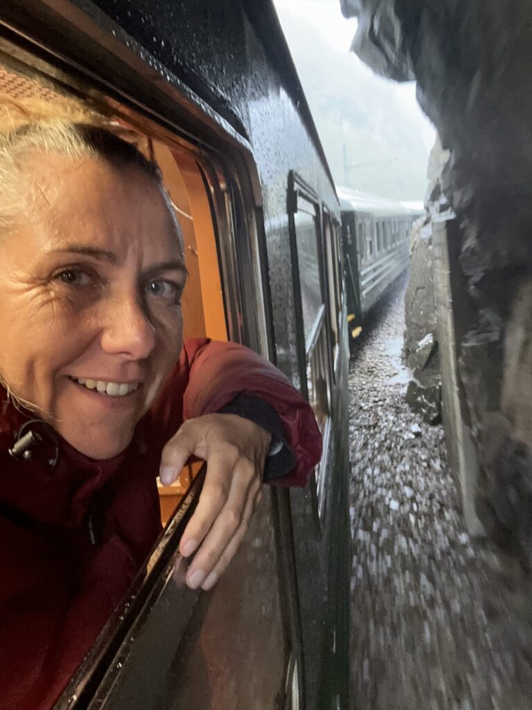 Dit is waarvoor men naar Flåm komt. De wereldberoemde spoorlijn. Ik start in het museum, dat gratis is en waarvan de ingang in de grote souvenierswinkel is. Je kan er een app downloaden en middels qr-codes lees en hoor je wat de foto’s en artikelen betekenen.